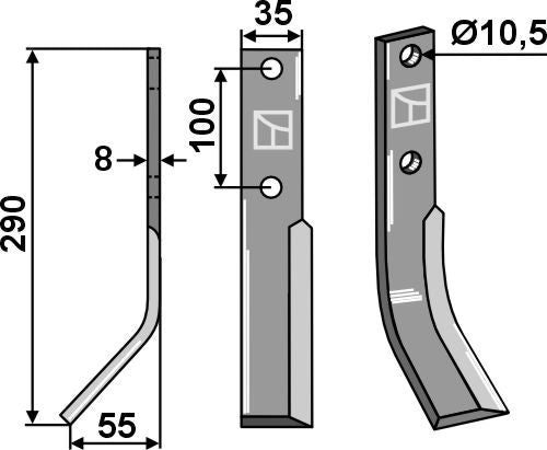 Rotary tine 290x35mm, left