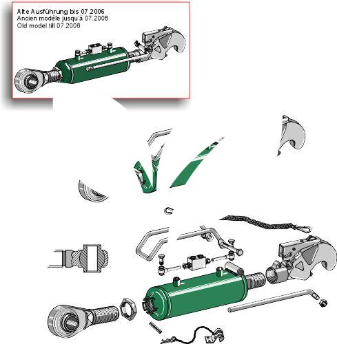 Hydraulic top-links with hook and tie-rod