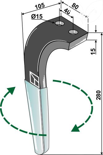 Tine for rotary harrows (DURAFACE) 280mm, right